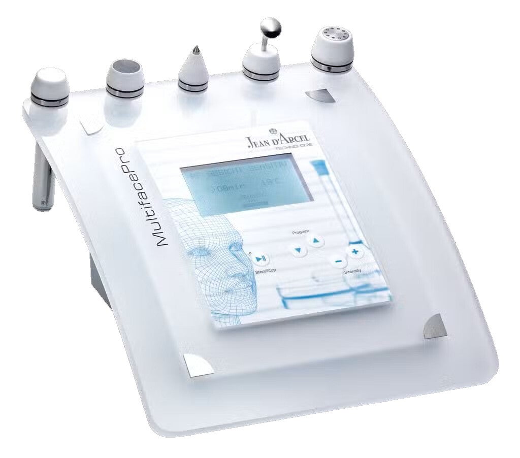 Het toestel van Jean d'Arcel is een geavanceerd professioneel huidverzorgingsapparaat dat verschillende technieken combineert om de huid zichtbaar strakker, egaler en gezonder te maken.